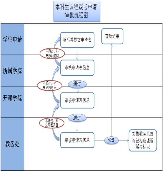 1、申请人提交缓考申请表及证明材料,5个工作日未能获得审批意见的,请学生及时联系所属学院或开课学院的相关教学秘书老师(附:各学院教学秘书联系方式);未获得“同意”审批意见的,视为未通过(缺考)处理。