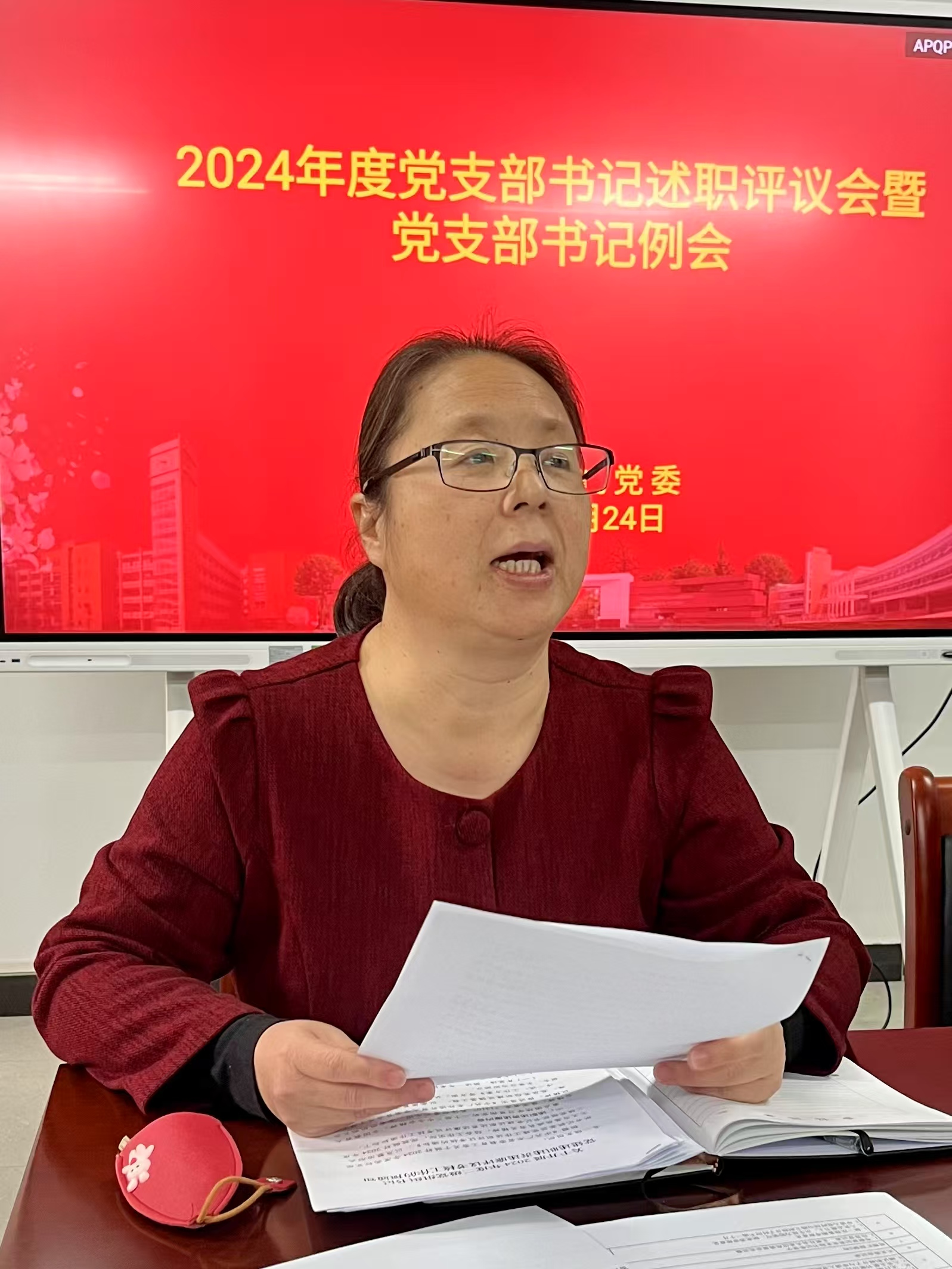 本次述职评议会重点围绕学习贯彻党的二十届三中全会精神、全国教育大会精神,实施 “基层党组织建设强基工程”,开展党纪学习教育,推进落实以高质量党建赋能学校事业“冲一流”等,就党支部工作开展情况、特色亮点、存在问题、努力方向与下一步措施等方面进行述职。教师党支部书记肖莉娴、行政党支部书记刘晓霞、印越柬缅学生党支部书记潘相宇、马泰老本科生与研究生党支部书记陈泠璇依次进行述职。