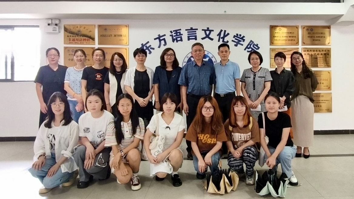 本网讯 2024年5月28日下午,汕头大学文学院陆生教授、大理大学外国语学院马丽亚教授应邀参加广东外语外贸大学东方语言文化学院举办的“泰语专业建设座谈会”。座谈会由东语学院院长刘志强主持,泰语专业全体教师及学生代表共计20余人参加了本场座谈会。