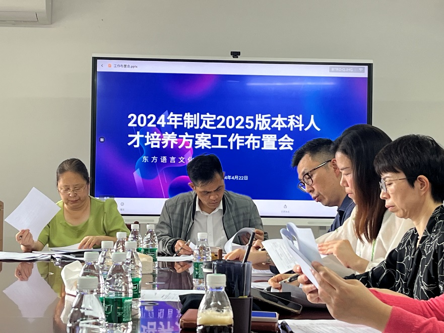 本网讯 4月22日下午,东语学院在白云山校区第一教学547会议室召开2024年制定2025版本科人才培养方案工作布置会暨2024年度本科招生宣传工作推进布置会。学院党委书记郝建萍、院长刘志强教授、副院长谈笑教授、以及各学院教学指导委员会成员出席会议。会议由谈笑主持。