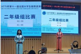 本网讯 4月27日至28日,第十一届“CATTI杯”全国大学生越南语演讲大赛在北京外国语大学隆重举行。大赛旨在促进我国高校越南语专业学生学习与交流,提升他们的语言应用能力和跨文化交际水平,同时也为我国越南语专业学子搭建了一个“比武”平台。