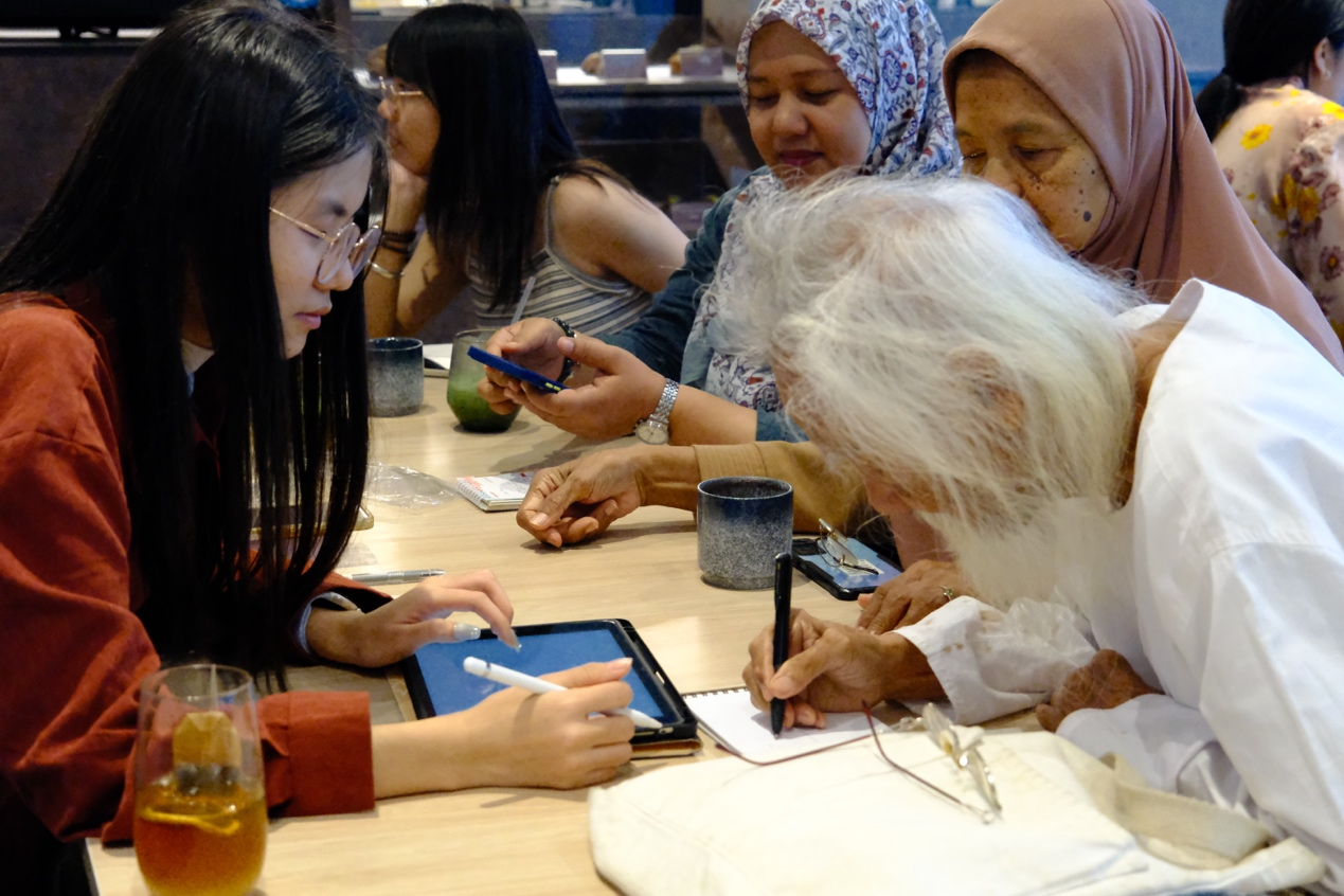 (研修团对马来西亚文学巨匠莎莫赛益进行访谈)