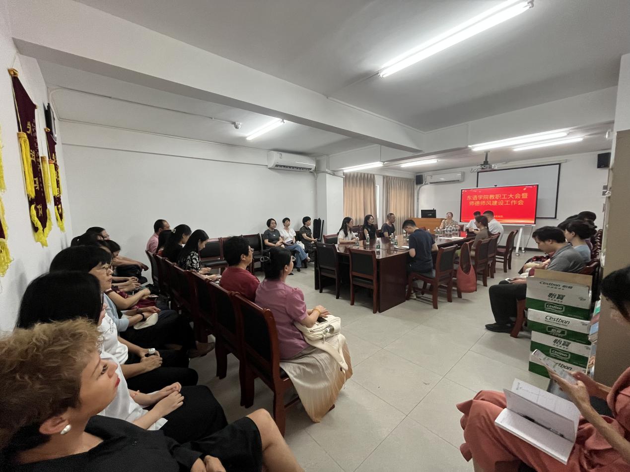 (本网讯)8月30日下午,东语学院在一教547会议室召开新学期教职工大会暨师德师风建设工作会,集中学习党的二十届三中全会精神,开展师德师风教育,部署新学期工作。全体教职工参加会议。会议由郝建萍书记主持。