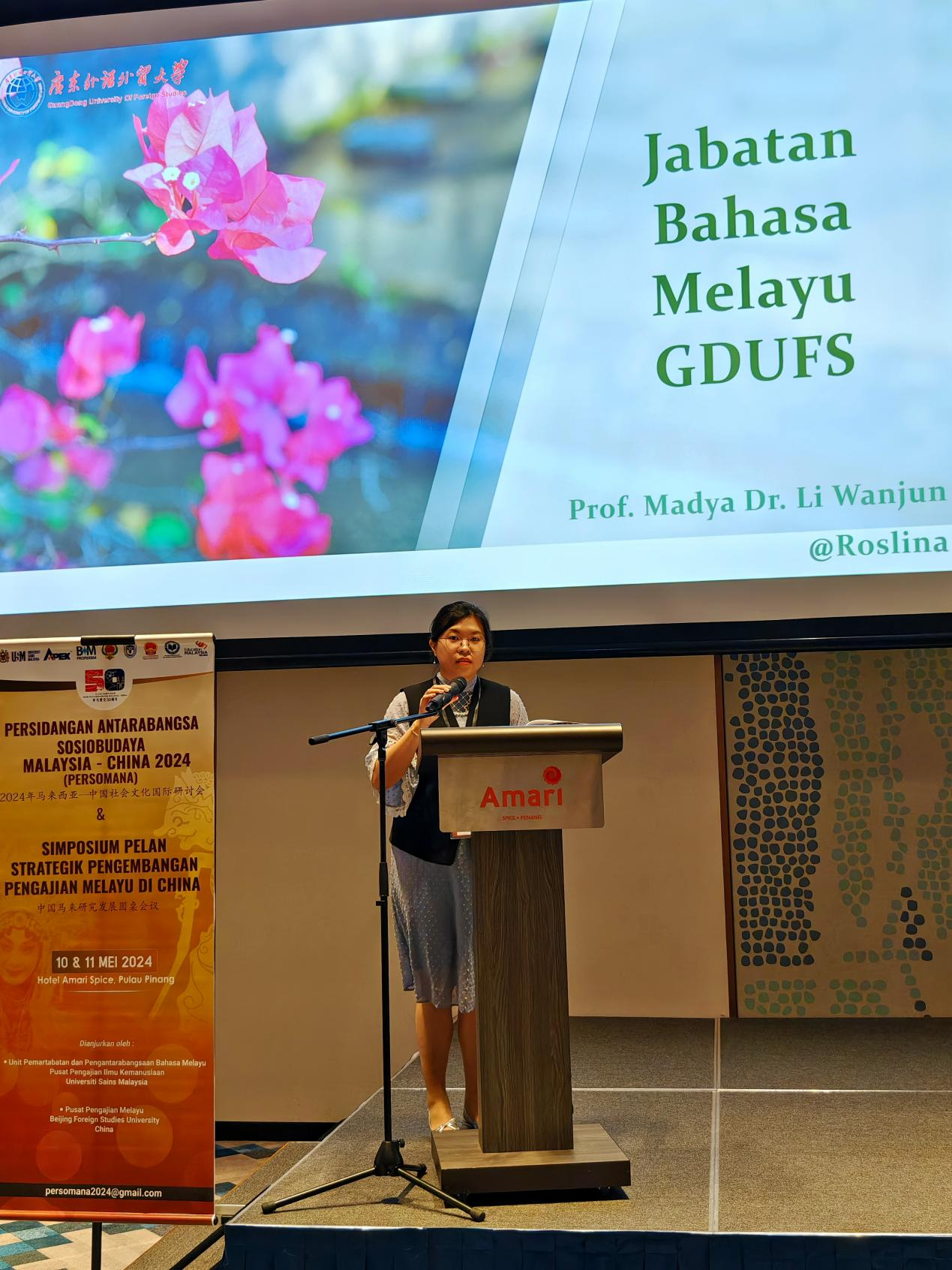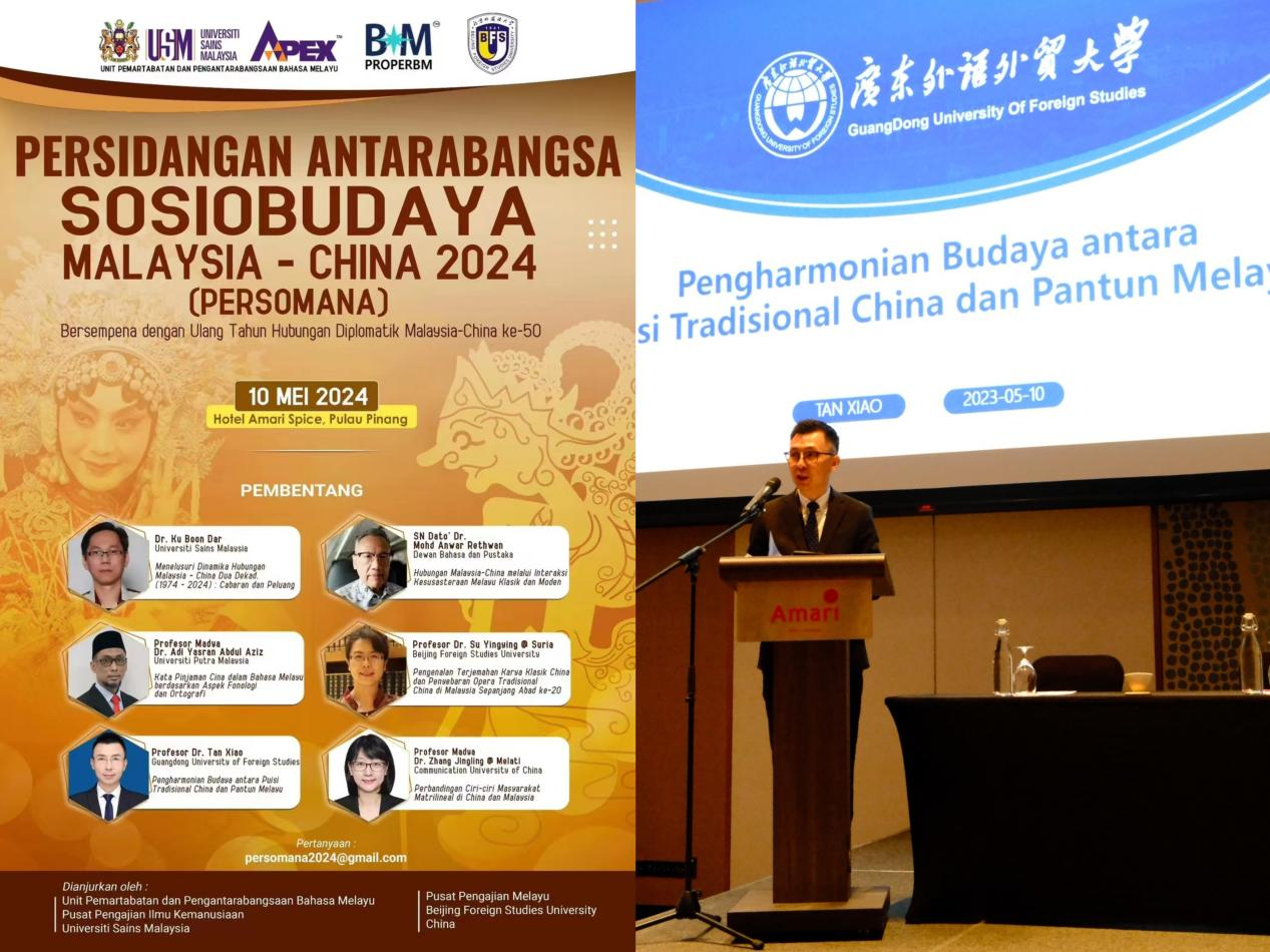 本网讯 2024年5月10日至11日,由马来西亚理科大学和中国北京外国语大学联合举办、马来西亚国家语文局和马来西亚翻译和创作协会协办的“2024年马来西亚—中国社会文化国际研讨会”暨“中国马来研究发展圆桌会议”在马来西亚槟城召开,来自中马两国的近百名专家学者出席,我校东方语言文化学院谈笑教授和李婉珺副教授参会。