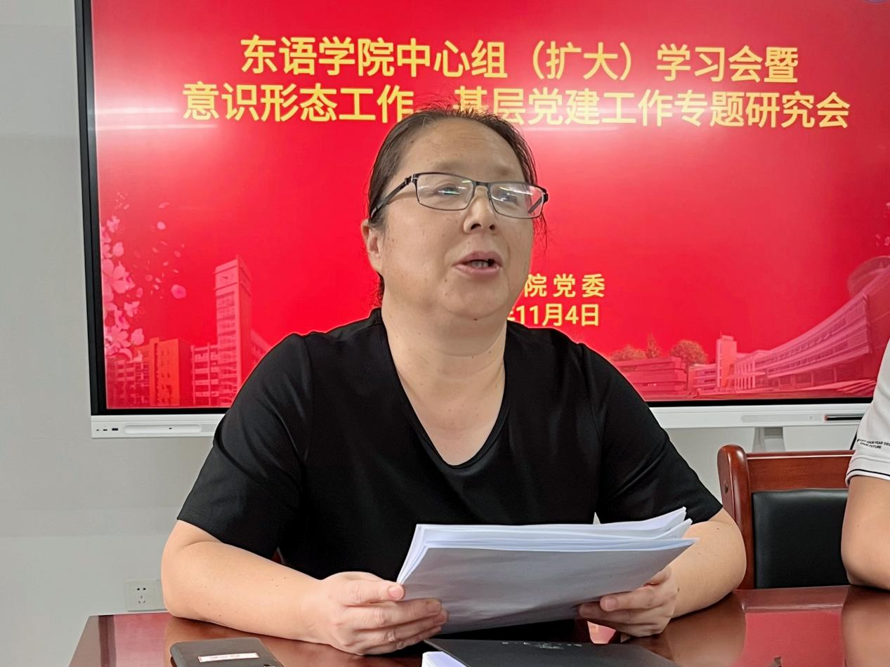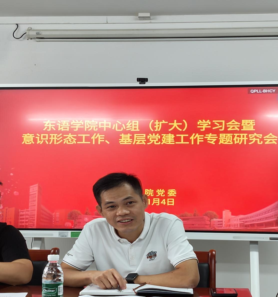 本网讯 为学习贯彻党的二十届三中全会精神和全国教育大会精神,深入学习习近平文化思想及习近平总书记关于意识形态工作、党的建设工作的重要论述,进一步深化学院改革,11月4日下午,东语学院党委召开理论学习中心组(扩大)学习会暨意识形态工作、基层党建工作专题研究会。学院党委委员、党政领导班子成员、院长助理、系主任、办公室主任、党支部书记、组织员、辅导员参加会议,会议由郝建萍书记主持。