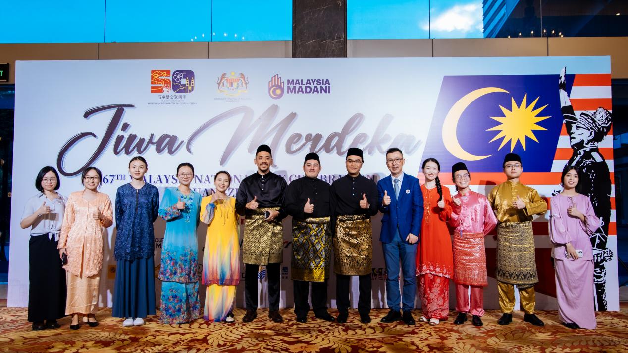 (本网讯)2024年8月30日,东语学院马来语系谈笑、戚颖瑶两位老师及10多名同学应邀参加由马来西亚驻广州总领事馆举办的马来西亚67周年国庆暨中马建交50周年招待会。马来西亚驻广州总领事苏莱雅(Suraya Pauzi)、广东省人大常委会副主任刘雅红分别致辞。