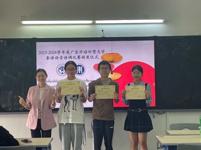 比赛结束后,泰语系老师们为本次泰语语音语调比赛及上学期末泰语书法比赛的获奖者颁奖。