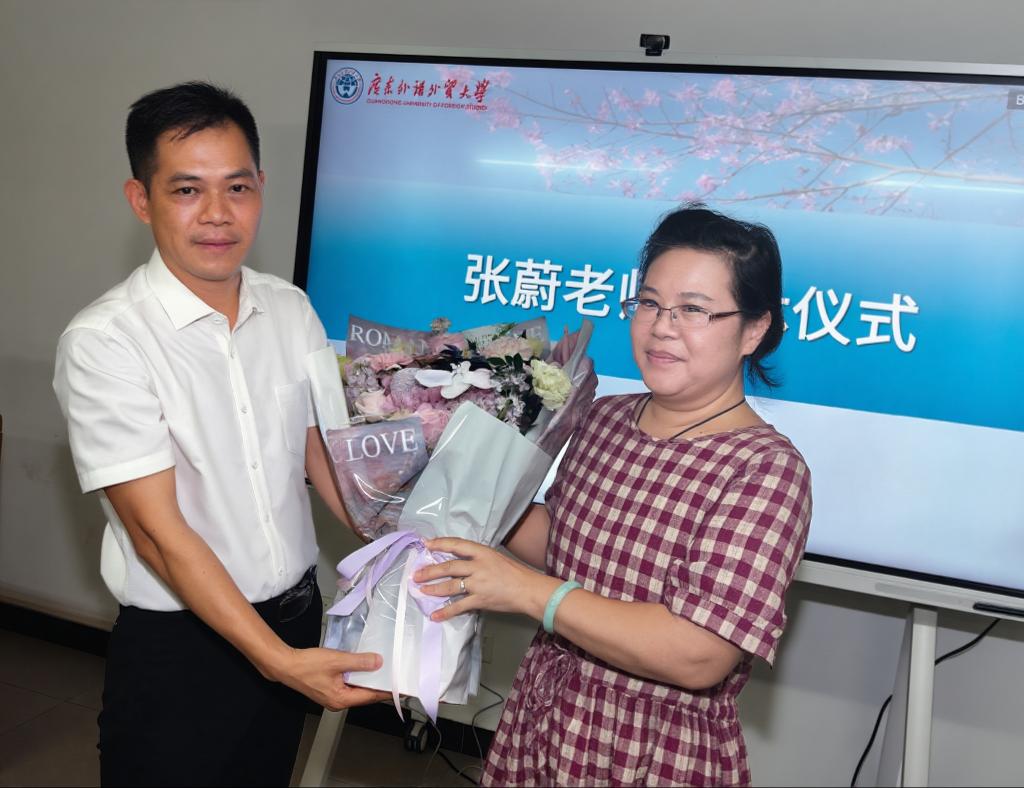 会上,学院为即将退休的印尼语系张蔚老师举行荣休仪式。刘志强院长为张蔚老师献花和颁发纪念品,并代表学院致辞。他高度评价了张蔚老师数十年来为学院发展和学生成长所付出的辛勤汗水与智慧结晶。他代表全院师生员工,向张蔚老师致以最崇高的敬意和最诚挚的感谢,祝福张老师退休生活幸福美满,有空的时候,常回家看看,能一如既往地关心和支持学院的发展。张蔚老师从自身经历出发,对从教33年工作进行追忆,对学院班子和全体教职工表示真诚的感谢,对学院发展进步和年轻教师成长成才表示最诚挚的祝福并充满信心和期盼。