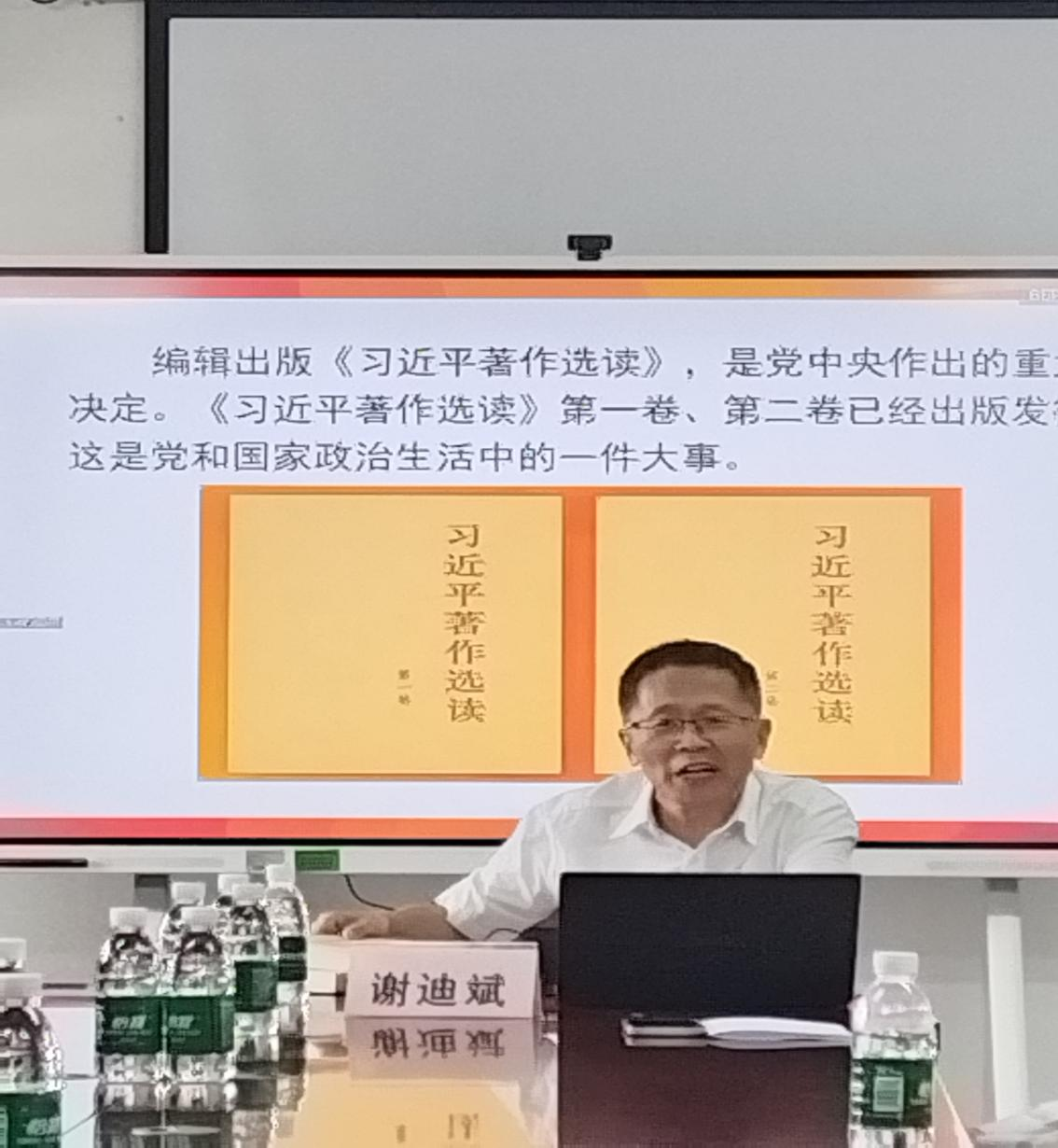 学院党委郝建萍书记对谢迪斌教授的精彩报告表示感谢,并要求全体教职工要不断提高思想认识和政治站位,深刻学习领会《习近平著作选读》的深刻内涵,深学细悟习近平总书记重要讲话、重要指示批示精神的重大意义,不折不扣将其中的实践要求贯彻落实到具体工作中,以更加奋进的力量为学院和学校事业发展作出更大的贡献。