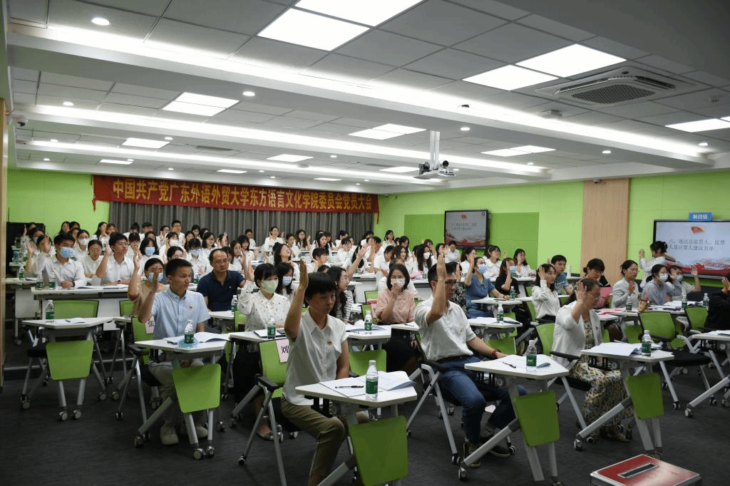 按照大会议程,学院党委副书记潘相宇同志宣读校党委《关于东方语言文化学院党委换届候选人预备人选的批复》和新一届东方语言文化学院党委委员候选人简历,宣读中国共产党广东外语外贸大学东方语言文化学院委员会换届选举办法(草案),与会党员表决通过选举办法(草案)以及总监票人、监票人、计票人名单,全体正式党员以无记名投票、差额选举的方式,选举产生了刘志强、肖莉娴、郝建萍、谈笑、潘相宇5名同志为新一届东方语言文化学院党委委员。