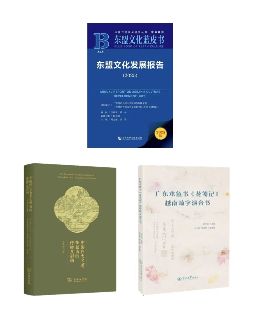 论坛期间还举办了《东盟文化发展报告(2025)》《中国四大名著在越南的传播及影响》以及《广东木鱼书<花笺记>越南喃字演音书》三本新书发布会,来自社会科学文献出版社、商务印书馆、暨南大学出版社的代表分别致辞。