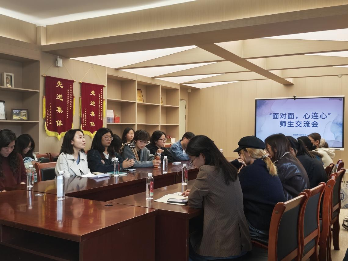 在交流讨论环节,师生们就学业等实际问题进行了深入探讨。与会的同学们结合自身学习体验反映了本学期在课程安排中遇到的情况,陈诗、蒙霖等老师认真听取了同学们的发言,并逐一进行了回应与说明。她们表示,学院将高度重视学生的反馈,会后与教学管理部门进一步沟通,保障教学计划的科学性与学生学习的稳定性,确保培养方案的高质量实施。
