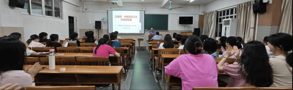 本网讯 2024年5月11日晚,应广东外语外贸大学东方语言文化学院邀请,广西大学外国语学院特聘教授祁广谋在广外白云山校区第二教学楼131室为我院师生作《汉越词:中越语言文化交流的结晶》主题讲座。