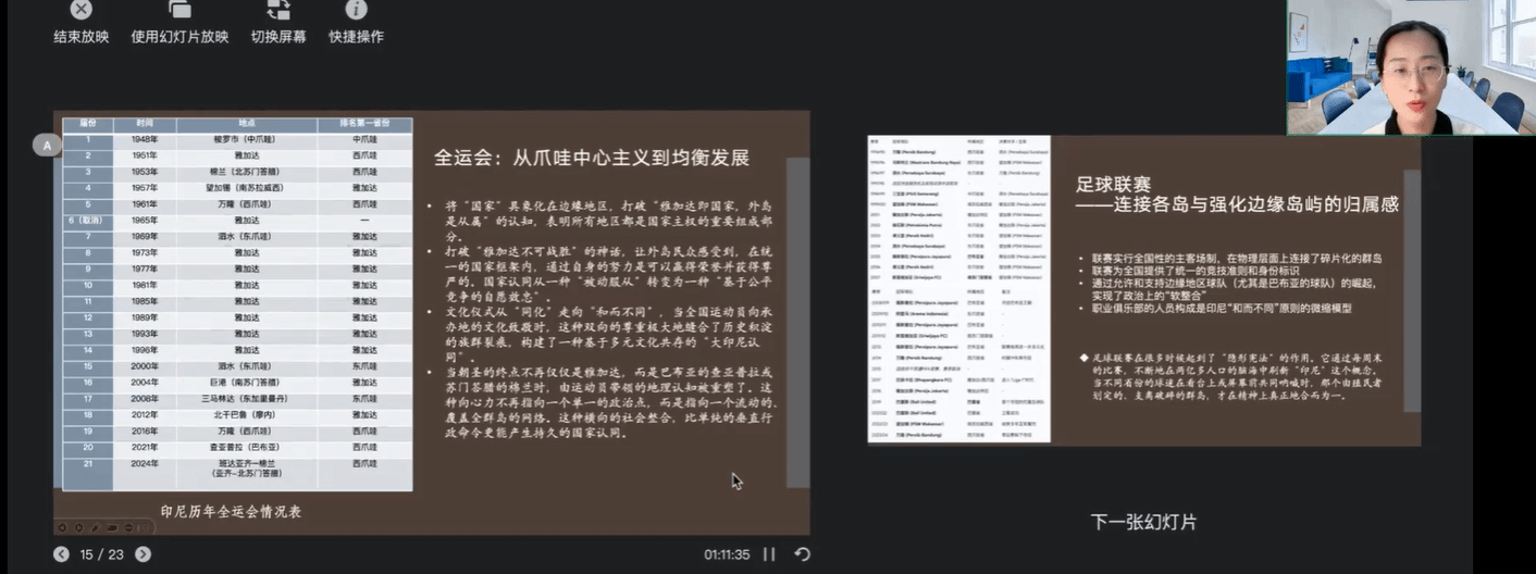 本网讯 1月13日下午,我院印尼语系顺利举办期末教学实践周系列讲座暨专业建设活动。本次讲座以“全球南方如何通过体育构建国家认同——以印尼为个案的考察”为主题,特邀北京体育大学人文学院孙云霄老师担任主讲,通过腾讯会议为全系师生带来了一场内容丰富的学术分享。