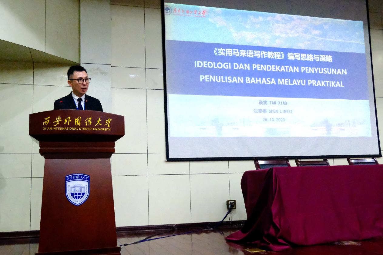 与此同时,2023年第四届中国-马来西亚翻译、语言与文化国际研讨会成功举办。本次研讨会由西安外国语大学与马来西亚理科大学联合举办,来自中马两国的数十位专家学者参与研讨。会议围绕马来语专业学科建设、马来语言文学研究、中马两国文化交流等议题展开了为期一天的研讨。广外东语学院马来语系谈笑教授、李婉珺副教授、外教扎伊顿和伊扎特分别就各自研究领域进行了论文宣读。
