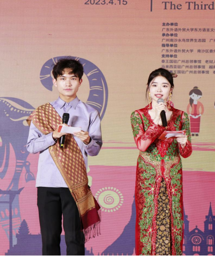 本网讯 2023年4月15日,由广东外语外贸大学东方语言文化学院和广州南沙RCEP文商旅融合创新产业合作园联合主办的“东盟风韵嘉年华”——第一届东南亚风情文化节暨广东外语外贸大学东方语言文化学院开放日、第三届宋干节“宋干·送福”活动在广州南沙水鸟世界生态园举行。本次活动由广州南沙水鸟世界生态园和广州市南沙区服务贸易协会联合承办。本次活动在广东外语外贸大学、南沙区委外办、南沙区文化广电旅游体育局、共青团南沙区委员会以及南沙区商务局的指导下开展,受到来自泰王国驻广州总领事馆,老挝人民民主共和国驻广州总领事馆、印度尼西亚共和国驻广州总领事馆、马来西亚驻广州总领事馆、越南社会主义共和国驻广州总领事馆、柬埔寨王国驻广州总领事馆以及泰国国家旅游局广州办事处的支持。马来西亚驻广州总领事馆总领事苏莱雅、老挝驻广州总领事馆总领事沙婉萍、印度尼西亚共和国驻广州总领事馆文化领事柯思婷、泰国国家旅游局广州办事处副处长武玛冰,广东外语外贸大学党委副书记唐锐、广州市南沙区人大常委会副主任冷瑞华、共青团南沙委员会书记罗赟、广州市南沙区委外办主任郑慧荣、南沙区文化广电旅游体育局局长鲁辉、广东外语外贸大学教务部部长陈金诗、广东外语外贸大学国际交流合作部副部长陆露莅临活动现场。东方语言文化学院党委书记郝建萍、副院长谈笑、党委副书记潘相宇、社会各界的中外嘉宾、广东外语外贸大学东方语言文化学院各系师生、留学生以及学生家长参加了此次盛会。