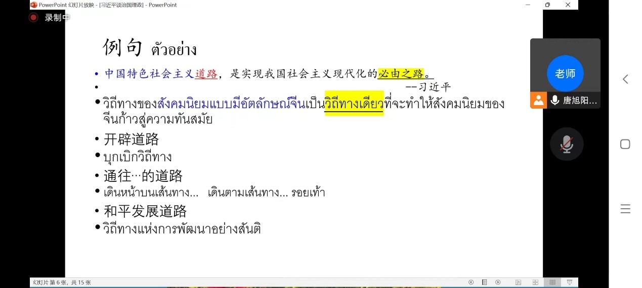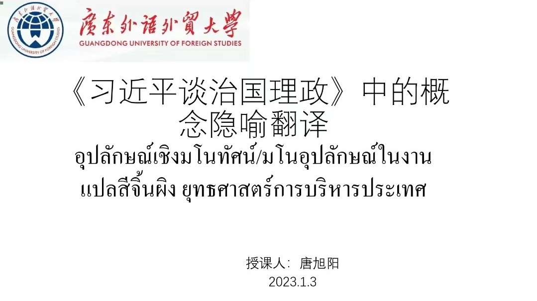 本网讯 2023年1月3日,泰语系对系内全体学生开展翻译实务提升专题培训,以线上会议形式进行。培训分别由唐旭阳老师、廖宇夫老师主持,两次专题培训围绕《习近平谈治国理政》的中泰翻译文本对照学习展开。